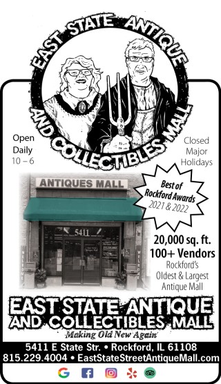 EAST STATE ANTIQUE AND COLLECTIBLE MALL. Where we are making OLD THINGS NEW AGAIN, where every item has it's own story. Discover the items that fit your individual style. Conveniently located at 5411 East State Street in Rockford, IL. The mall is locally-owned by Dennis & Judy Luinstra and is the largest and oldest antique mall in Rockford. We feature over 100 dealers in a 20,000 square foot facility with quality genuine antiques. We have a large selection of vintage furniture, tools, jewelry, clothes, mid-century items, collectibles, toys, many books & so much more. Come spend a couple of hours shopping with us and reliving the past, admiring all of our amazing items all located under one roof. Make it a day, fun for the whole family. We also feature a variety of events, including store wide sales. Join us on our web page: http://www.EastStateStreetAntiqueMall-Rockford.com. Follow us on Facebook: East State Antique Mall Rockford. Like us on Instagram, Yelp, TripAdvisor & Google